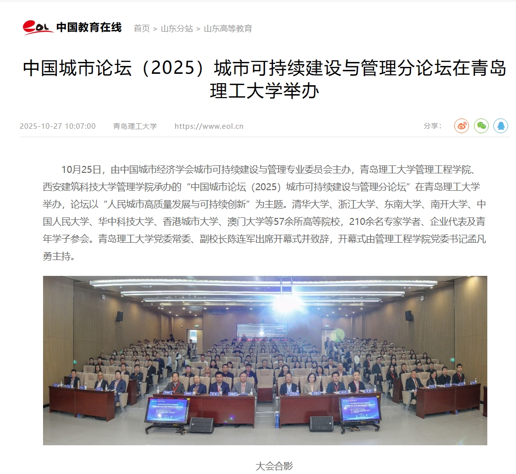 【中国教育在线】中国城市论坛(2025)城市可持续建设与管理分论坛在青岛理工大学举办