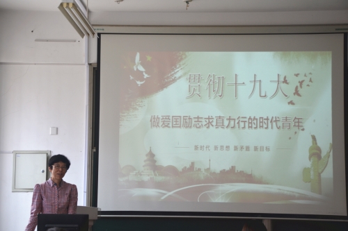 为贯彻落实党的十九大会议精神,进一步提高研究生党员的思想觉悟、夯实理想信念,扎实做好2018级硕士研究生入学教育,9月11日上午,管理工程学院于二教310举办理想信念专题教育讲座。此次讲座以“贯彻十九大,做爱国励志求真力行的时代青年”为主题,由党总支书记梁虹主讲。