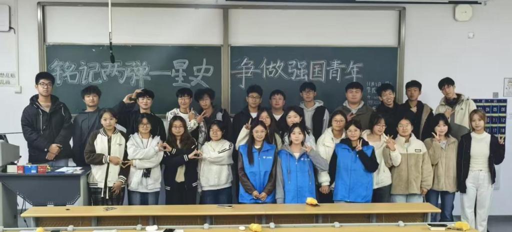 星火宣讲传薪火,青春聚力续华章。“两弹一星”精神穿越时空,历久弥新。通过本次青衿星轨团宣讲活动,同学们更加明确了作为新时代大学生的责任与使命。下一步,青衿星轨宣讲团将继续开展实践宣讲,传承精神,结合社会实践将“两弹一星”精神与大学生思政课有机融合,在青春阵地点燃爱国奋斗的精神火炬。(撰稿:孙亚琦,郭纯孜;审核:柳志广)